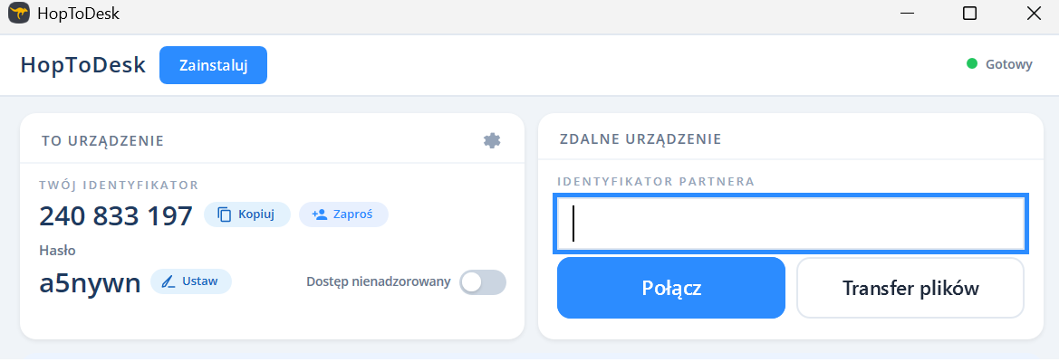 🔍 Zobacz, jak wygląda HopToDesk po uruchomieniu